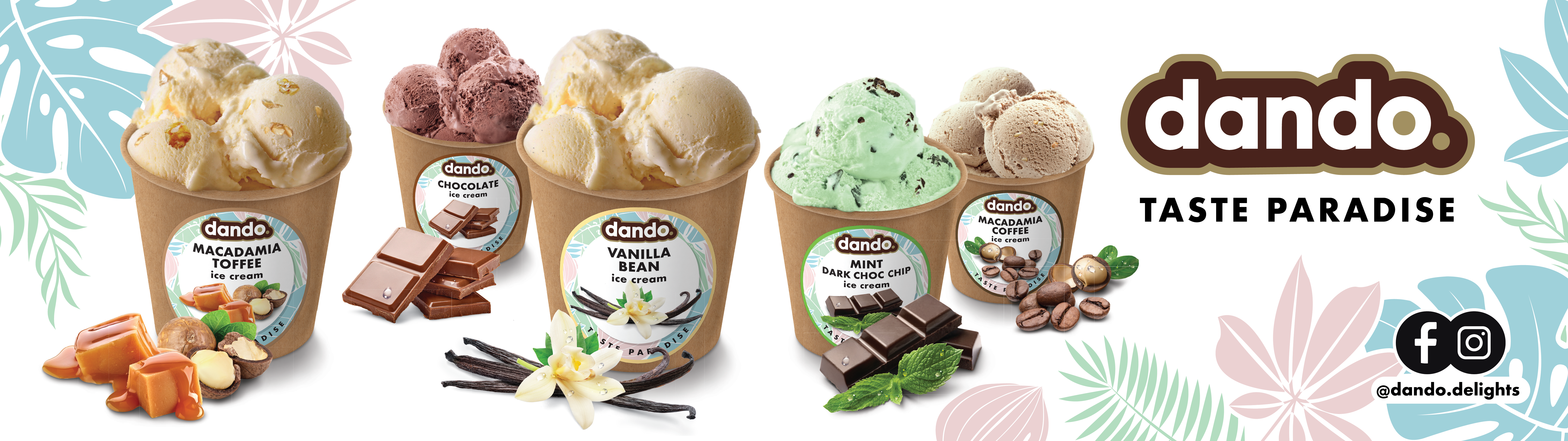 That's when Britt decided to share her ice cream magic with the world. She founded Dando Delights, a company which would not only provide an opportunity for all to ‘taste paradise’ but also allow both Britt and her husband Chris to have fun creating macadamia nut inspired premium products.